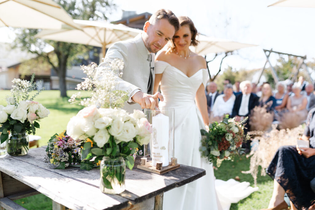 Ein weiterer großer Vorteil: Die Wege an der Location sind wunderbar kurz. Wir müssen nicht für das Shooting irgendwo hinfahren oder Zeit im Auto verlieren. Stattdessen lassen sich kleine Fotoeinheiten ganz entspannt in den Tagesablauf integrieren – mal eben ein paar Minuten raus in den Garten, im goldenen Licht des Nachmittags, während die Gäste sich bei einem Drink unterhalten. Auch für das Paarshooting müsst ihr euch nicht lange von euren Liebsten trennen. Die schönsten Fotospots befinden sich direkt auf dem Gelände – romantisch, authentisch und immer nah dran am Geschehen. Das sorgt nicht nur für entspannte Bilder, sondern auch für eine entspannte Stimmung.